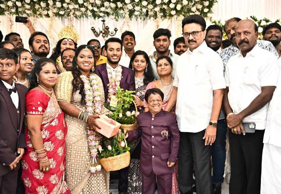 நகைச்சுவை நடிகர் கிங் காங் மகளின் திருமண வரவேற்பு நிகழ்ச்சியில் முதல்வர் ஸ்டாலின் கலந்து கொண்டு வாழ்த்து தெரிவித்தார்.