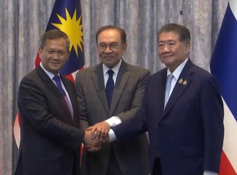 தாய்லாந்தின் தற்காலிகப் பிரதமர் பும்தம் வெச்சயாசாய் மற்றும் கம்போடியாவின் பிரதமர் ஹன் மானெட் ஆகியோர் இன்று மலேசியாவின் புத்ரஜெயாவில் உள்ள பிரதமர் அன்வரின் அதிகாரப்பூர்வ இல்லத்தில் போர்நிறுத்தப் பேச்சுவார்த்தையில் ஈடுபட்டனர்.