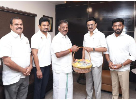 இதனிடையே, தமிழக முதல்வர் மு.க.ஸ்டாலினை, ஓ.பன்னீர்செல்வம் இன்று காலை சந்தித்துப் பேசினார். சென்னை, அடையாறு பூங்காவில் நடைப்பயிற்சி சென்றபோது இருவரும் சந்தித்துப் பேசிக் கொண்டனர். அப்போது, முதல்வர் ஸ்டாலினிடம் உடல்நலம் குறித்து ஓபிஎஸ் கேட்டறிந்ததாக தகவல் வெளியானது. பின்னர், சென்னை ஆழ்வார்பேட்டையில் உள்ள முதல்வர் ஸ்டாலின் வீட்டுக்கு இன்று மாலை திடீரென வந்த ஓ.பன்னீர்செல்வம், அவருடன் சந்திப்பு நடத்தினார். ஓ.பன்னீர்செல்வத்தை துணை முதல்வர் உதயநிதி ஸ்டாலின் வீட்டு வாசல் வரை வந்து வரவேற்றார்.