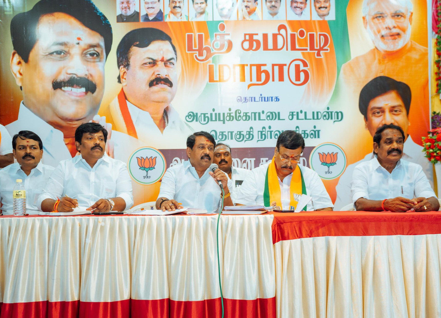 திருநெல்வேலியில் இம்மாதம் 17-ம் தேதி 5 நாடாளுமன்ற தொகுதிக்கு உட்பட்ட பூத் கமிட்டி மாநாடு முதன் முதலாக நடைபெற உள்ளது. அதுகுறித்து அருப்புக்கோட்டை, விருதுநகர் சட்டமன்ற தொகுதியில் ஆய்வு செய்து வாக்குச்சாவடி பொறுப்பாளர்களை சந்தித்துப் பேசியுள்ளேன். அனைத்து தொகுதியிலும் பூத் கமிட்டி அமைத்துள்ளோம்.