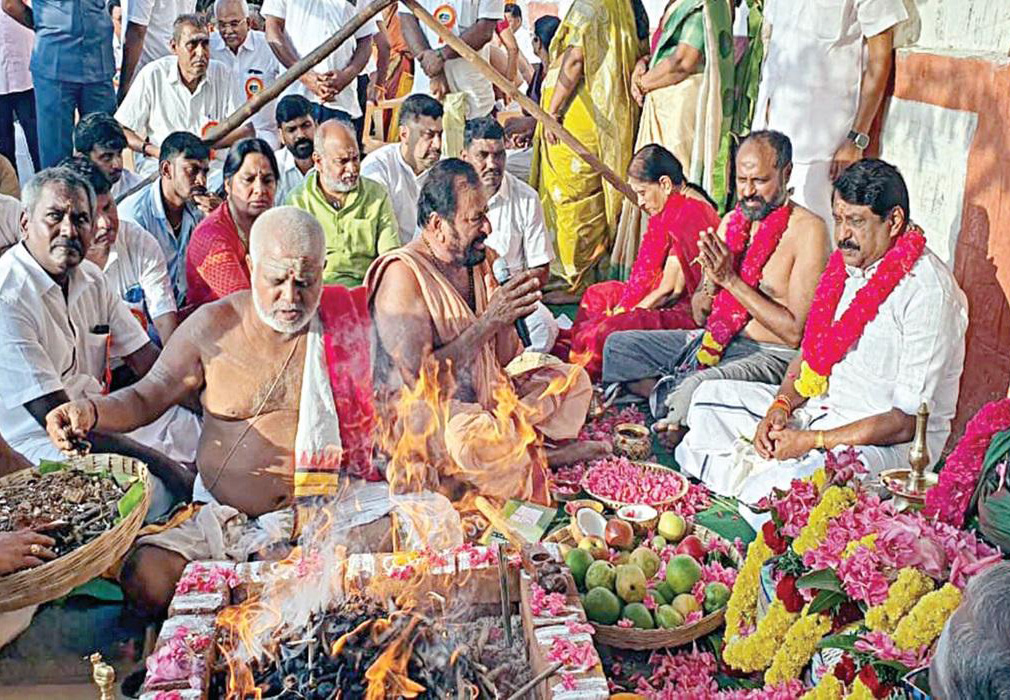 ஈரோடு மாவட்​டம் பவானி சங்​கமேஸ்​வரர் கோயி​லில், ஆடிப்​பெருக்​கையொட்டி நடந்த ஹோமம் மற்​றும் சிறப்பு பூஜை​யில் பங்​கேற்ற நயி​னார் நாகேந்​திரன், பின்​னர் செய்​தி​யாளர்​களிடம் கூறிய​தாவது:-
