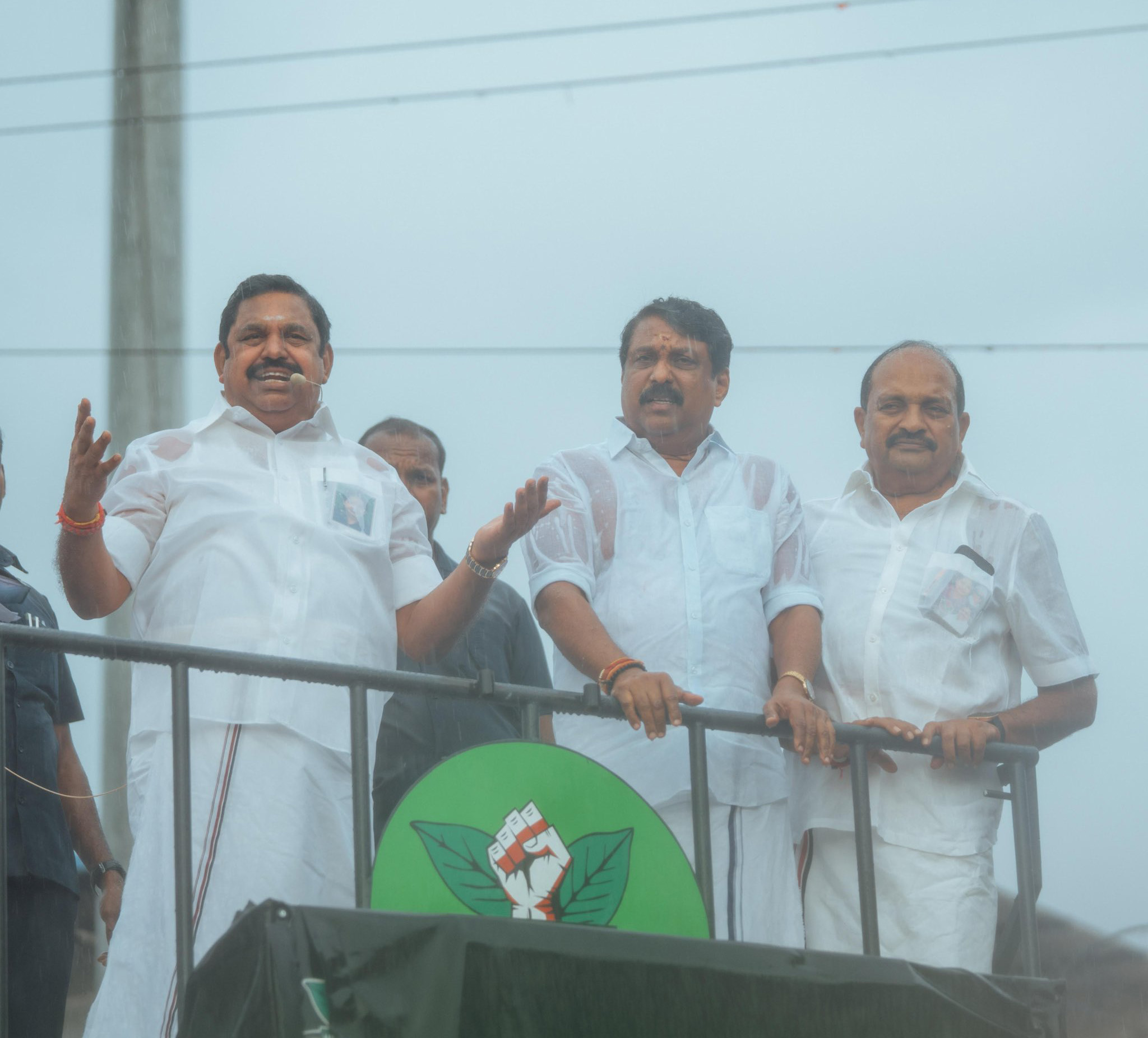 முன்னதாக, திருநெல்வேலியில் கொட்டும் மழையில் திரண்டிருந்தவர்கள் மத்தியில் பழனிசாமியும், பாஜக மாநில தலைவர் நயினார் நாகேந்திரனும் பேசினர். முன்னாள் அமைச்சர்கள் தளவாய்சுந்தரம், ஆர்.பி. உதயகுமார், காமராஜ், சி. விஜயபாஸ்கர், கடம்பூர் ராஜு, திருநெல்வேலி மாவட்ட பாஜக தலைவர் பலவேசம் உள்ளிட்ட கூட்டணி கட்சி நிர்வாகிகள் பங்கேற்றனர்.