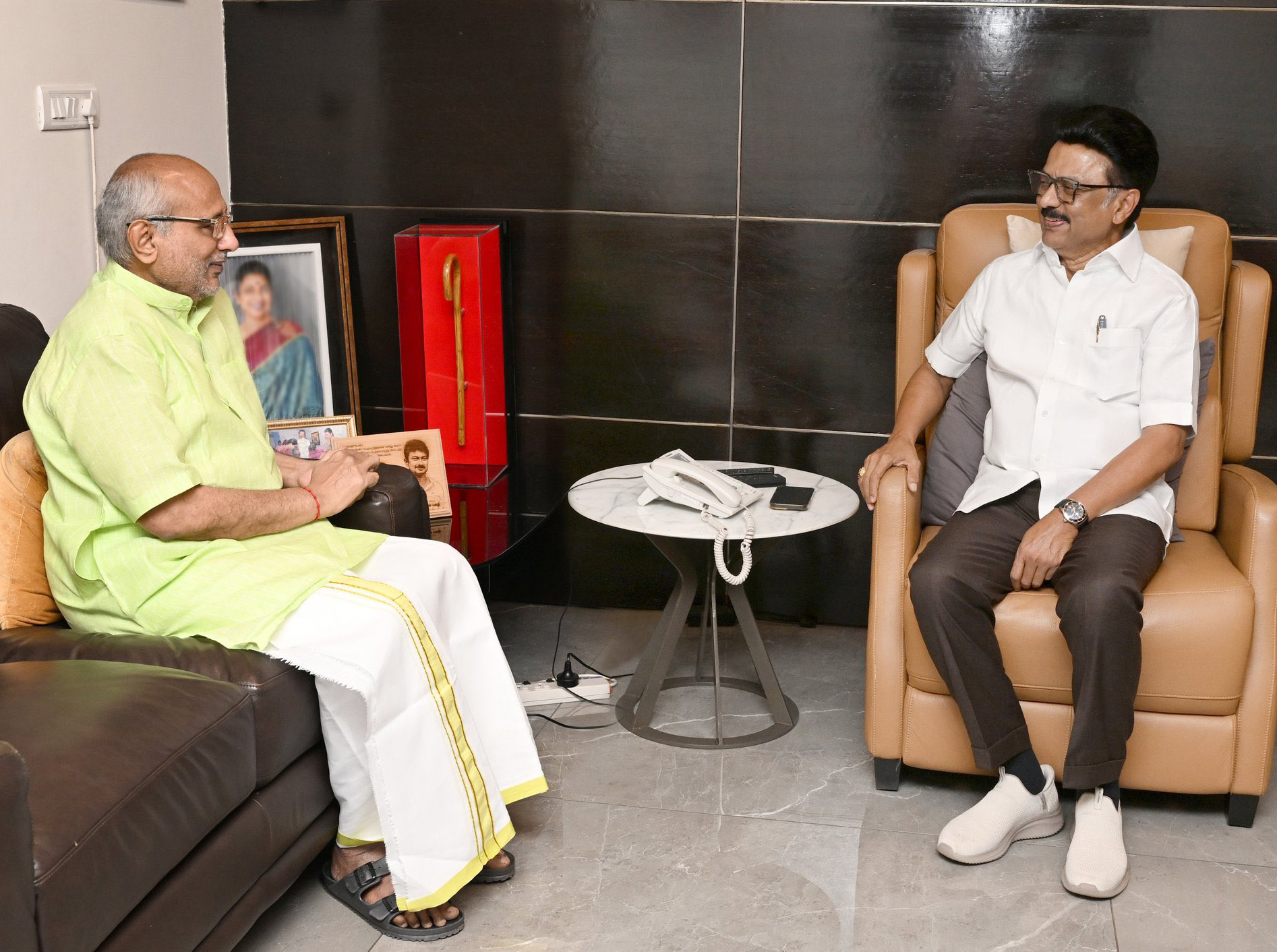 இந்த நிலையில் முதல்-அமைச்சர் மு.க. ஸ்டாலினை நேற்று முகாம் அலுவலகத்தில் வைத்து மராட்டிய மாநில கவர்னர் சி.பி. ராதாகிருஷ்ணன் சந்தித்தார். அப்போது முதல்-அமைச்சரின் சகோதரர் மு. க. முத்து மறைவின்போது வெளியூரில் இருந்த காரணத்தினால், அவரது மறைவிற்கு இரங்கல் தெரிவித்ததோடு, முதல்-அமைச்சரின் உடல்நலம் குறித்தும் சி.பி. ராதாகிருஷ்ணன் விசாரித்தார்.