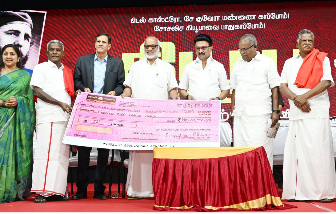 கியூபா ஒருமைப்பாட்டு தேசியக் குழு மற்றும் இந்திய மார்க்சிஸ்ட் கம்யூனிஸ்ட் கட்சி சார்பில், சென்னை ராஜா அண்ணாமலை மன்றத்தில் முப்பெரும் விழா நடைபெற்றது. இந்நிகழ்ச்சியில், முதல்வர் மு.க.ஸ்டாலின் கலந்துகொண்டார். அப்போது, முதல்வர் ஸ்டாலின் பேசியதாவது:-