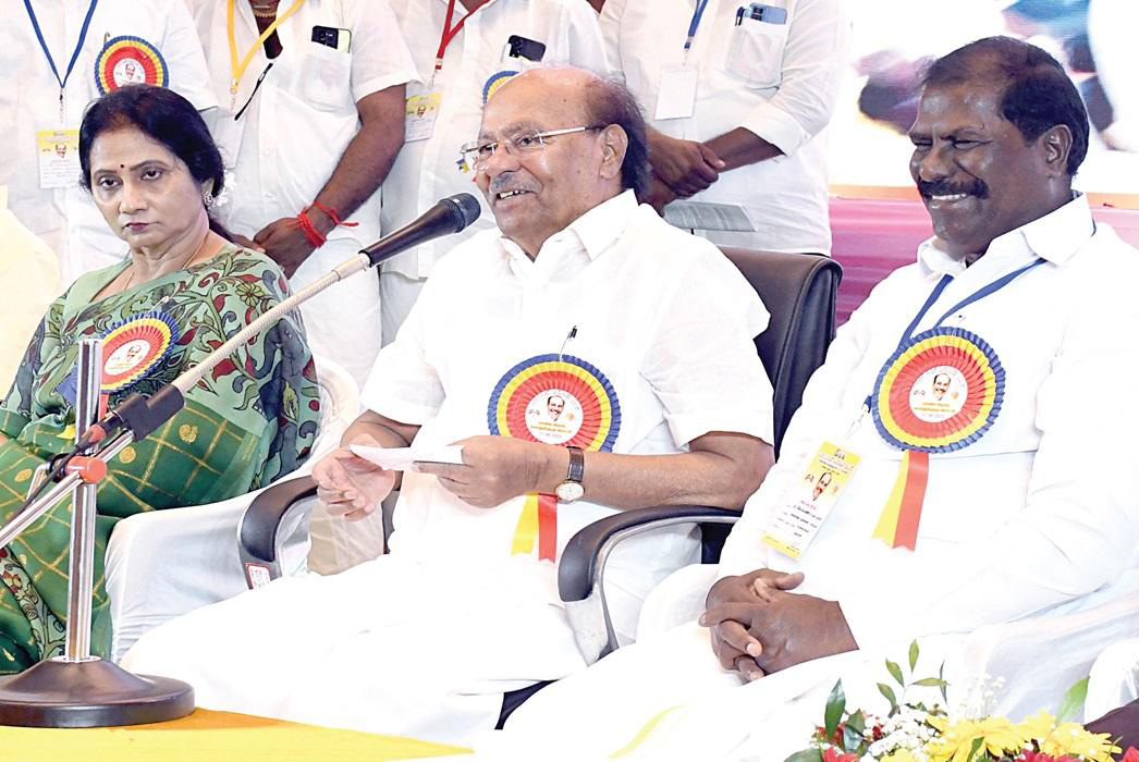 பாமக சிறப்பு பொதுக்குழுக் கூட்டம் புதுச்சேரி அடுத்த பட்டானூரில் நேற்று நடைபெற்றது. நிறுவனர் ராமதாஸ் தலைமை வகித்தார். பொதுச் செயலாளர் முரளிசங்கர், மாநில அமைப்புச் செயலாளர் அன்பழகன், சேலம் மேற்கு எம்எல்ஏ அருள் உட்பட 2 ஆயிரத்துக்கும் மேற்பட்ட பொதுக்குழு, செயற்குழு உறுப்பினர்கள் கலந்துகொண்டனர். மேடையில் ராமதாஸுக்கு அருகிலேயே, அவரது மகள் ஸ்ரீகாந்தி அமர்ந்திருந்தார். கவுரவத் தலைவர் ஜி.கே. மணி தீர்மானங்களை வாசித்தார்.