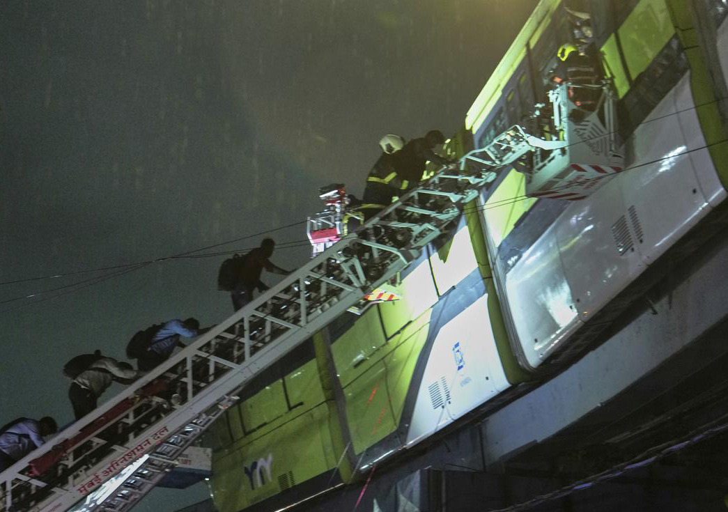 மும்பையில் நடுவழியில் திடீரென தொழில்நுட்ப கோளாறு காரணமாக மோனோ ரெயில் உயர்மட்ட பாதையில் நின்றது. ஜன்னல் கண்ணாடியை உடைத்து பயணிகள் மீட்கப்பட்டனர்.